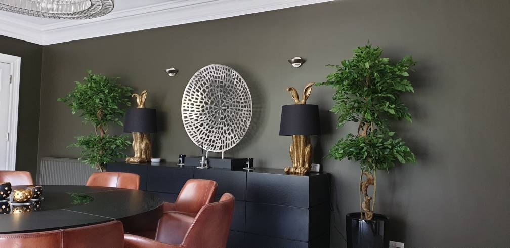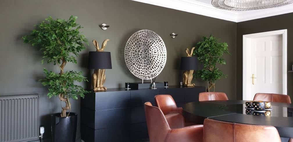 Leaf Design UK Artificial Evergreen Large Trees - 150cm Large Twisted Ficus. Overall size as arranged in our photos: 150cm tall. Comes fully assembled requiring only minor arrangement to suit your space.. Comes in a Plastic weighted pot. Pot Measurements: 17cm (d) x 15cm (h) approx.Stems are wired and can be shaped to your requirements.High quality plant from Leaf Design UK.