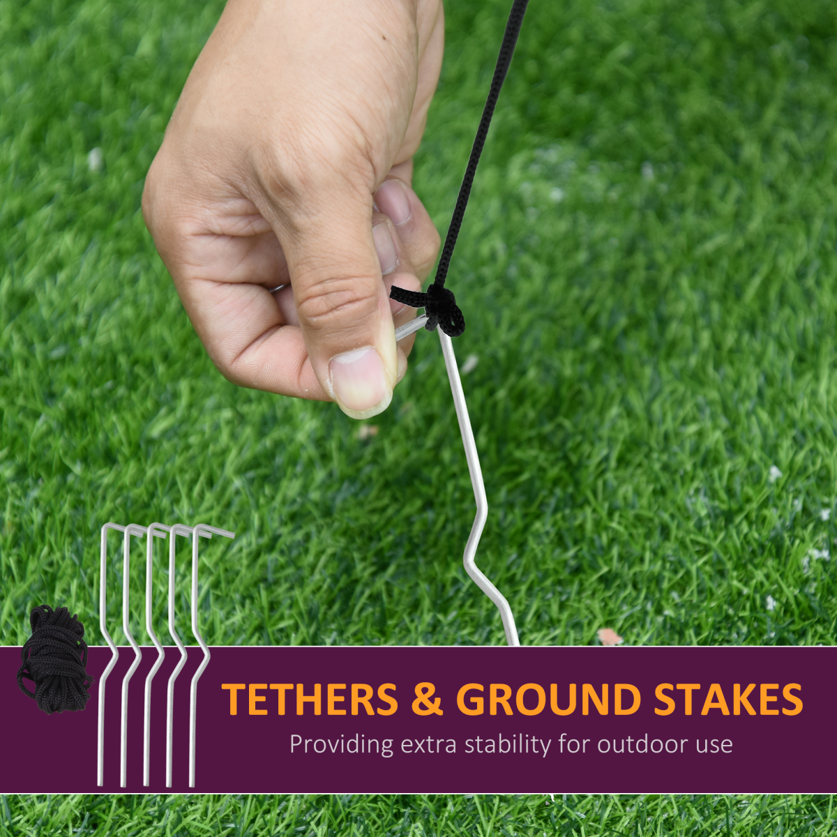 - Internal fan, three tether ropes, five ground stakes, and sandbag included